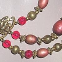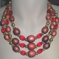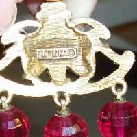 Very pretty necklace by Florenza features red faceted lucite beads combined with "stained" wood and lavish antiqued goldtone accents. 18" neckline (could be extended or shortened ) and 22" total.
