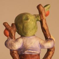 This companion figurine to "Apple Tree Girl" was also modeled by master sculptor Arthur Moeller in 1940, and has been restyled many times during the years. There are many size variations and early models have a tapered brown base. Old name:"Autumn" or "Fall".