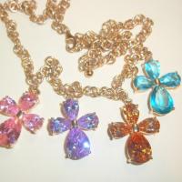 This gorgeous necklace is designed and imported by Adrienne and is considered heirloom quality. Gold over sterling this 16" necklace with 3" extender has 4 cross charms, each with the most beautiful cz's I've ever seen. Their sparkle is unrivaled. We also have the matching charm bracelet listed. Necklace comes with a jewelry description catd from Adrienne. These were previously only sold on a home shopping network and I was able to get one necklace and have 2 bracelets left.