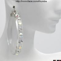 Clear lucite plastic and sparkling Aurora Borealis and clear crystal rhinestone bracelet embedded with a multitude of gorgeous, sparkling, high quality rhinestones. This is a night and day retro look that pays homage to the big clamper bracelets from the 1950s. Wear it alone or in pairs and match it up with our Clear Lucite & Rhinestone Ring shown below. By itself, in pairs or triplets or with the matching ring, this bracelet will be a favorite of yours to mix and match with others for your own special fashion look (#24053-LuciteRhinestoneBangleBraceletClearPlastic)