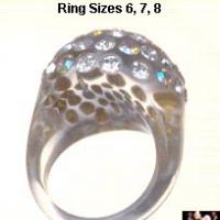 Clear lucite plastic ring with embedded rhinestones has a face size of approximately 1 x 1". There are approximately 52 gorgeous, sparkling crystal rhinestones in icy clear and Aurora Borealis clear to make this ring a bold fashion statement and a big winner. Available in Ring Sizes 6, 7 & 8. Click here to see the matching lucite and rhinestone bangle bracelet. Fun, fashionable and very pretty! (#24041-LucitePlasticRhinestoneRing)