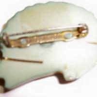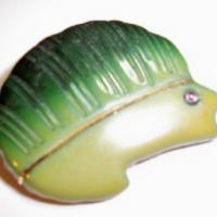 A cute litte critter - whether it is a hedgehog or sailfish ! About 1-3/4" long with a goldtone band accent and rhinestone eye. Signed on the back Made In Italy. Vintage. I tested it for bakelite and it was questionable, thus the price.