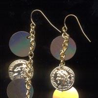 Coin necklace and earrings set is lush with lightweight metallic coins in bright goldtone combined with large oversize metallic plastic disks and Aurora Borealis clear and topaz faceted crystal beads. The two strand necklace is on a patinated brass colored chain and the shortest strand is adjustable from 16 to 19" with a sturdy and secure lobster clasp and extender chain. The matching earrings are on fish hooks for pierced ears and measure approximately 3-1/4 x 5/8". The earrings come with little plastic tube guards to make sure they stay securely with you. This set is extremely lightweight and comfortable but very big on impact. Fashion forward and lots of fun to wear, this one will get you compliments galore! We love it! (#24962-NecklaceSetCoinCrystalGoldtone) To order this Goldtone Coin Necklace & Earrings Set, just click on the blue shopping cart button to the left of the picture, or email us at: