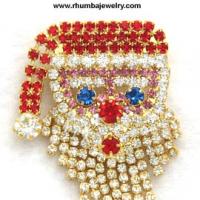 Charming Santa Claus tac lapel pin in all-prong-set rhinestones is very jolly fellow with dangling clear rhinestone beard, red hat with tassel, blue rhinestone eyes and a pink rhinestone face. In goldtone metal, he measures approximately 1-3/8 x 1" and has a tac pin closure. Our picture does not do this one justice. High quality sparkling rhinestones and expert craftsmanship make this Santa lapel pin for Christmas one you will love to bring out year after year! (#-ChristmasSantaClausLapelPinRhinestoneGoldtone)To order this delightful Rhinestone Santa Lapel Tac Pin, just click on the blue shopping cart button to the left of the picture, or email us at: Adon13@aol.com or telephone us at 773-929-9007 or fax us at 773-525-1920.