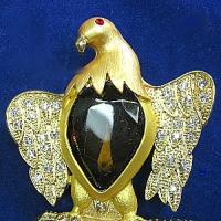 Big Bold Gold Tone & Topaz Bird Brooch/Pin