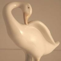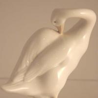 Economical Lladro Goose with head back as she preens her feathers. Off white color with gray base.
