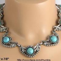 Turquoise necklace of turquoise nuggets of dyed howlite beads make for a gorgeous turquoise necklace and matching earrings set that looks like genuine turquoise without the price tag. The largest central bead of the necklace is approximately 1-1/4 x 7/8", so they are good-sized and their colorations are beautiful. The necklace is adjustable from 16 to 19" with a sturdy lobster clasp closure and extender chain. The matching earrings measure approximately 1-3/8 x 1/2" on fish hooks for pierced ears with tiny soft plastic stoppers to keep them securely in place and with you. An incredible value, you will be pleased to own this stunning turquoise necklace that can be worn alone or layered with others. (#28723-TurquoiseNuggetNecklaceEarringsSet)