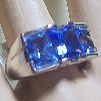 A beautiful sterling silver ring with a "bridge" setting contains three open back ocean blue cz stones. Nice work on this and gorgeous stones. This is a size 7.