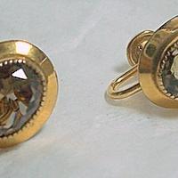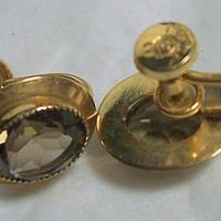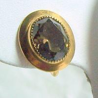 These beautiful earrings are vintage by a designer CC (haven't been able to find the mark, yet) They are 12K gold filled and the stone is gorgeous. Popular now are the "brown diamonds", well this would fit the bill only they're not diamonds, of course. Possibly a gemstone - open back setting and plenty of sparkle. Set in a classic gold filled bezel. Screw on style. Truly lovely.