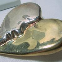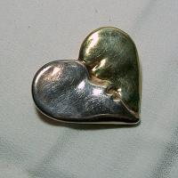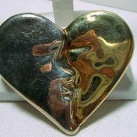 This is a lovely estate brooch featuring a heart 2-3/4 x 2-1/4". All sterling, however one side has a gold wash. If you look closely you will see the faces kissing in the center of the brooch. Very unique. This is signed in script on the back Jean Duclos (Frederic Jean Duclos) also Hand Made 925 and a paper "Made In USA" tag. A really gorgeous designer brooch.