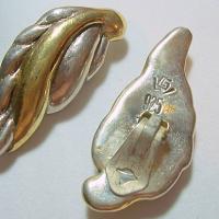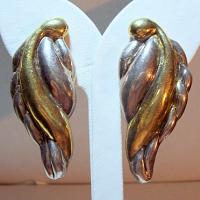This is a beautiful pair of sterling silver and gold vermeil earrings measuring 2". They are clip on style and signed on the back with a hallmark that looks like a G over a W. Exceptional quality and comfortable to wear anytime, anywhere !
