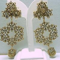 These are fabulous shoulder-duster earrings by Jose Barrera for Avon. They measures 4-1/2" long x 1-3/4 at the widest. Circular clusters of flower drops feature sparkling rhinestone accents. These are clip on style and actually very comfortable to wear.