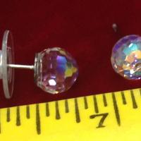 Swarovski Aurora Borealis crystal rhinestone earrings shoot sparks of heavenly light with your every movement. The stones are 10MM round faceted balls. Swarovski produces the finest quality crystal rhinestones that money can buy. These remarkable Aurora Borealis crystal rhinestone earrings will be your constant companions for casual or dressy occasions. They will go with everything in your wardrobe because although they shoot sparks of fiery light, they are neutral in color. Certainly large enough to be noticed shooting off sparks even if you have long hair, yet small enough to be comfortable. We see these beautiful Swarovski Aurora Borealis crystal ball earring in your future! (#32843-SwarovskiCrystalABFacetedBallStudEarrings10.5MMs)