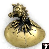 J.J. Dinosaur hatching egg pin is a whimsical delight from the Jonette Jewelry Company. In patinated brass color, this J.J. dinosaur hatching egg pin measures approximately 2 x 1-7/8" and has a safety closure. It is Mint on its original card and is signed JJ with a copyright symbol on the reverse of the pin raised from the mold. Now that the company has closed its doors, this pin will become more collectible as collectors realize the unique treasures that this company that has been an American jewelry company for over 70 years has produced. Another American jewelry manufacturing treasure lost! (#33180-J.J.DinosaurHatchingEgg)