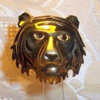 Shiny goldtone with black stripe accents makes this Tiger by Monet a beautiful brooch. A real "power" pin ! Measures 1-1/2".