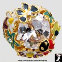 Dior inspired floral enamel and Cubic Zirconia statement ring after the precious Milly-la-Foret design line features a huge, clear Cubic Zirconia stone surrounded and overlaid with highly detailed enameled flowers, a dragonfly and a bee with tiny Cubic Zirconia accents. The face of the ring measures a whopping 1 x 1 and is raised approximately 1/2". This color combination is available in standard Ring Sizes 6, 7 and 8. Said to be the new ring of choice at Hollywood cocktail parties for all the in-the-know stars, we can understand why -- it is simply incredible! Imagine wearing this breathtaking reproduction for a song! Clever you! (#36432-RingCubicZirconiaDiorInspiredClearGT)