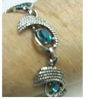 Vintage Emerald Green/Blue Changeable Rhinestone Silver Tone Bracelet
