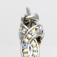 High heel fashion shoe pendant necklace is a sexy high heel fashion shoe with criss-crossed, Aurora Borealis clear rhinestones in silver tone metal in a gold tone shoe with clear rhinestone accents. This ultra feminine high heel sandal shoe measures approximately 1-7/8 x 1-1/8" and comes with its own silky silver tone square snake chain. The chain is approximately 15-1/2" with a secure lobster clasp closure. The high heel sandal shoe pendant cleverly has the bail on the side of the shoe so that it lays sideways when worn to give the most beautiful impression of this more-than-attractive image. The two-tone silver and gold tone color of the pendant will allow you to wear this beauty with either your silver and gold jewelry. We think this one is amazing! (#37425-HighHeelShoeFashionSandalPendantNecklace2Tone)