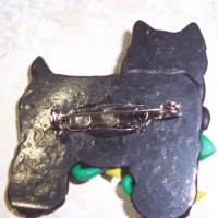 Adorable black schnauzer or terrier pin all "wrapped up" for Christmas. This is made of resin and has great detail and "personality"....