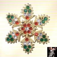 Christmas snowflake pin of quality, sparkling rhinestones is all-prong-set and distinguishes itself by its lovely, delicate design with touches of red and green rhinestones. This icy, sparkling rhinestone snowflake pin measures approximately 2-1/8 x 2" and has a safety closure. A gorgeous touch of holiday sparkle, this Christmas rhinestone snowflake pin will turn basic outfits into celebration attire in a twinkle! (#37608-ChristmasSnowflakePinRhinestone)