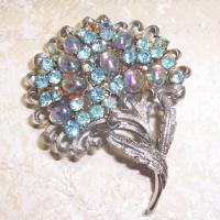A very pretty Coro Pegasus brooch featuring silvertone base and blue rhinestones. I believe the rhinestones have been reglued - quite a long time ago, but they still look lovely !