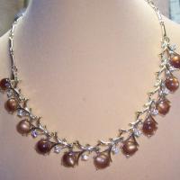 Beautiful light goldtone necklace by Coro features brown moonstone cabochons and crystal rhinestone beads in a 17" x 1/2" necklace.