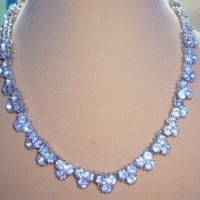 Sparkling necklace by Trifari features a single row of rhinestones with alternating larger stones below. This measures 15" including an extender chain with a signed hook clasp.