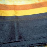 This is a gorgeous scarf if you love wildlife - i.e. Tigers.......This stunning tiger face print scarf is signed "Honey" in the corner. It has a black border and background (black is in sheer and opaque stripes) 34 x 35". Very good condition.