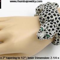Alligator clamper bracelet will wrap your wrist in glorious Aurora Borealis peridot color and olive green rhinestones in apple green sheer enamel over gold tone metal for a magnificent creature that will steal any show. This beautifully menacing creature has twinkling jet black rhinestone eyes and measures approximately 1-1/2" wide. The inner dimension of this alligator bracelet is approximatey 2-1/2 x 2" when closed with its side hinge that will automatically snap closed. We love the fantasy of this treacherous alligator bracelet and think you will too! Do you hear ticking? :) (#42445-AlligatorBraceletRhinestoneClamperGoldTone)
