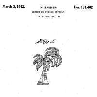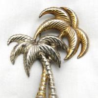 Uncas sterling silver palm trees pin features one palm tree that is gold plated over sterling to give the pin a two-tone effect that will allow you to wear either white gold or yellow gold jewelry with it equally well. This stunning and expertly crafted Uncas palm trees pin measures a generous 2-3/4 x 2" and has a safety closure. Our photo is reflecting the black camera lens onto the pin, but it is in pristine condition and is signed on the reverse, "STERLING -U- PATENT NO. 131462". We have included a copy of the US Patent dated March 3, 1942 for his impressive pin that weighs nearly a full ounce of sterling silver, approximately 29.6 grams. Here is a magnificently crafted sterling silver palm tree pin of vermeil and sterling silver that is a tropical vintage beauty! (#42624-PalmTreesSterlingSilver2ToneVintage)