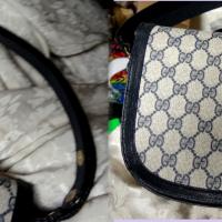 We have up for auction today a fantastic treat: A genuine Gucci Ladies leather handbag with the signature logo design / pattern.