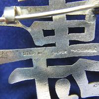 Sterling Silver Oriental Chinese Script Older Vintage Brooch/Pin