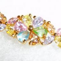 This beautiful bracelet is from an estate and It is marked 14Ky. Gorgeous design with tiny cz stones featuring butterflies all along the chain with a more elaborate design at the center. Measures 7" x 1/4" wide with foldover clasp at the end. Tons of sparkle.