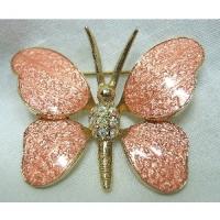 Sweet Peach Enamel & Aurora Borealis Rhinestone Butterfly Gold Tone Pin/Brooch