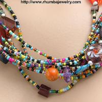 Necklace set has twelve strands of colorful seed beads with an assortment of interesting beads and facted crystals to give you color options galore! This very interesting necklace set takes its name from the Native American treasure necklaces that were a gathering of interesting beads collected over the years. This beauty is adjustable from 17-3/4 to 21-1/2" with a secure lobster clasp closure and extender chain. There are iridescent beads, lampwork style beads, simulated Mother of Pearl beads and lots of colorful transparent crystals in shapes from flat oval to galactic. The matching earrings measure approximately 2 x 1-1/2" on fish hook closures for pierced ears. What a fun set to finish off a simple colorful tee and jeans, casual capris or a skirt. Colorful and casual, here is a necklace set that is full of "treasures". (#464139857-NecklaceSetMulticoloreadSeedBeads)