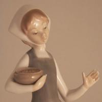 Young girl is getting ready to feed her duck in this Lladro "Girl with Duck" Figurine #1052.