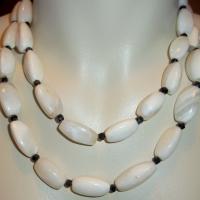 Icy cold, white quartz beads measure about 1" long each and are separated by faceted small black faceted glass beads. The necklace is a single solid strand measuring 38". Ready to wear as is or use in your designs. Gorgeous beads !