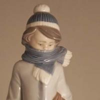 The little Lladro lad is dressed for "WINTER" with his boots, scrarf, and stocking cap. His dog is trying to snuggle up to him and under the scarf. Umbrella on his right arm in case it starts to rain instead of snow. #5220