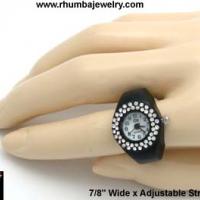 Stretchy black rubber chain bracelet with gold tone charm is similar to one sold by Michael Kors. It is approximately 1/2" wide and has an inner dimension of approximately 2-1/2" for a roomy and comfortable fit. This will stretch to go over your hand and on your wrist, so there will be no fooling with clasps to pop this one on. We love the hip and trendy look of this simple, but very au courant bracelet. You will love the understated but very couture and high fashion savvy look. One of our faves! (#45513-BraceletBlackRubberChainNarrow)