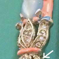 The rhinestones appear darkened under magnification and, even so, when worn they are very sparkly to the naked eye. All of the rhinestones are hand set with matching high table rhinestones that are probably hand cut. What a gem!