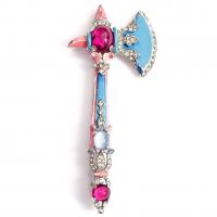 Famed Trifari 'Alfred Philippe' Axe Pin Brooch is said to be an ancient symbol of the elevated status of its wearer. This particular enamel axe pin brooch has such a wonderful color palette with soft blue and pink enamel accenting simulated ruby and moonstone cabochons and offset with sparkling clear rhinestones, it will break the heart of any true costume jewelry lover. Among even the most discriminating of collectors, this is a very highly prized piece of vintage costume jewelry.