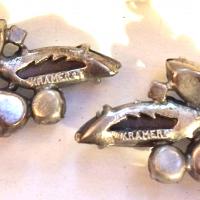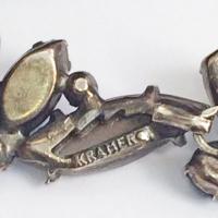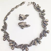 Signatures abound on this beautiful creation by Kramer, and we understand why they were so proud to claim it. Each section of the necklace is signed, "KRAMER", raised from the mold. The earrings are signed, both on the matching segments of the necklace and on the reverse of the decorated fish hook closure.