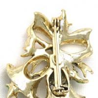 GERRY' Christmas bells pin dates to the 1960s and is a nostalgic reminder of Christmases past. This festive pin has a wonderful Christmas bells image that is very three-dimensional with quality plating and the enamel intact, this vintage Christmas pin is in Excellent Condition. It measures approximately 1-7/8 x 1-1/4" and has a safety closure. One of the nicest of this type we've seen! You will be pleased to add this early vintage Christmas bells pin to your wardrobe as well as your collection! (#43578-GERRYSChristmasBellsPinVintage)